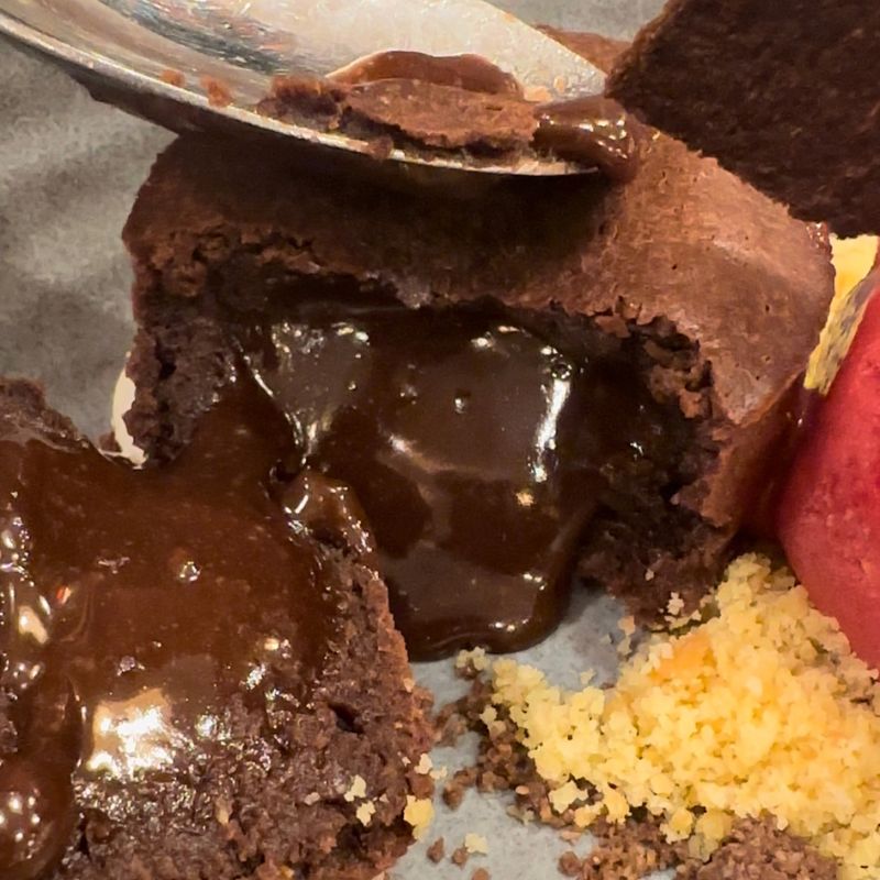 Pour terminer le repas, place au dessert ! Le soir où nous y sommes allés nous avons choisis la tarte au citron meringuée façon Rostand et un coeur coulant au chocolat. La structure de la tarte changée de l’originale avec un Lemon curd très bien maîtrisé (le citron n’était pas trop amer pour moi !). Quant au coeur coulant, il était bieeeen coulant comme j’aime ! Comptez entre 8€ et 11€ pour un dessert.