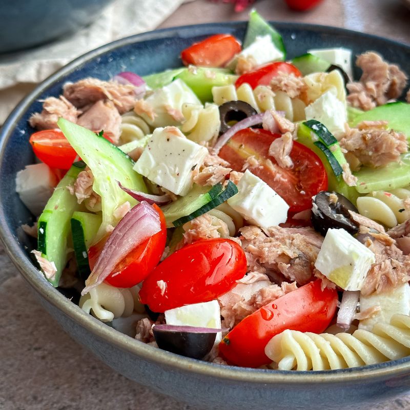 Un incontournable l’été dans mes assiettes : la salade de pâtes ! C’est rafraîchissant et ça apporte tous les nutriments dont nous avons besoin dans l’assiette. Pour cette recette, je vous emmène avec moi sur le bassin méditerranéen direction la Grèce.