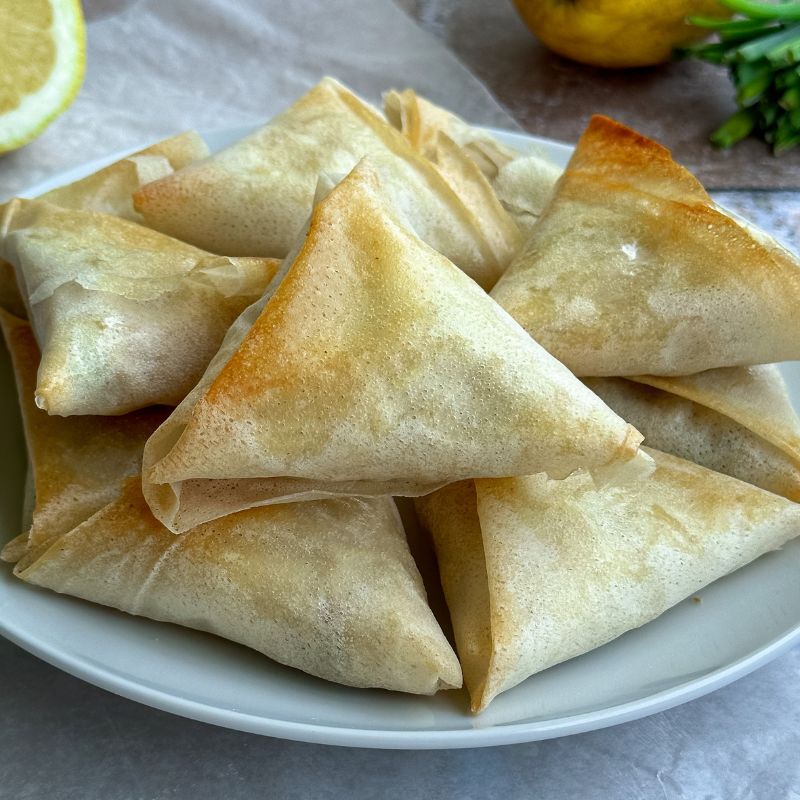 - Mettre de l’huile d’olive au pinceau sur chaque samoussa.