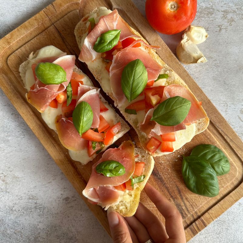 Direction l’Italie le temps d’un repas avec cette recette de bruschetta ! A l’origine, la bruschetta c’est le plat du « pauvre » de la région des Pouilles pour ne pas gâcher le pain. Aujourd’hui, on la retrouve partout en Italie comme anti pasti.