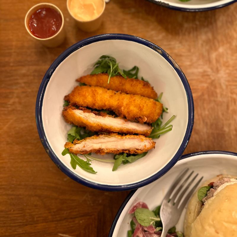 Pour les plus gourmands, on peut prendre du poulet pané coupé en lamelles (top pour partager !). Pour les avoir goûtés, ils sont bien croustillants