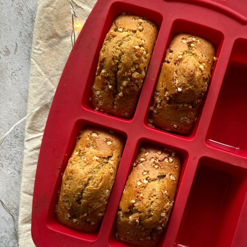 Vous sentez cette bonne odeur de Noël ? En attendant les fêtes de fin d’année, je vous partage ma nouvelle recette facile à réaliser de petits cakes au bon goût de pain d’épices. Cette recette ne contient pas de beurre pour de petits cakes légers .