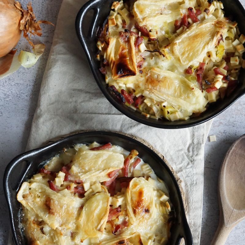 La croziflette est une alternative de la tartiflette traditionnelle réalisée avec des crozets, une spécialité savoyarde de petits carrés découpés dans une pâte à base de blé et d’oeufs. Cette recette réconfortante est à réalisée avec du Reblochon pour un maximum de gourmandise.