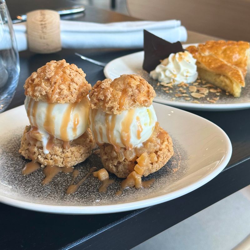 Côté dessert, j’ai pris leurs profiteroles glacées au yaourt façon tatin. J’ai beaucoup aimé cette revisite des profiteroles ! La glace au yaourt et les morceaux de pommes fondants apportent de la fraîcheur au dessert. Vous pouvez déguster un dessert entre 6€ et 10€.