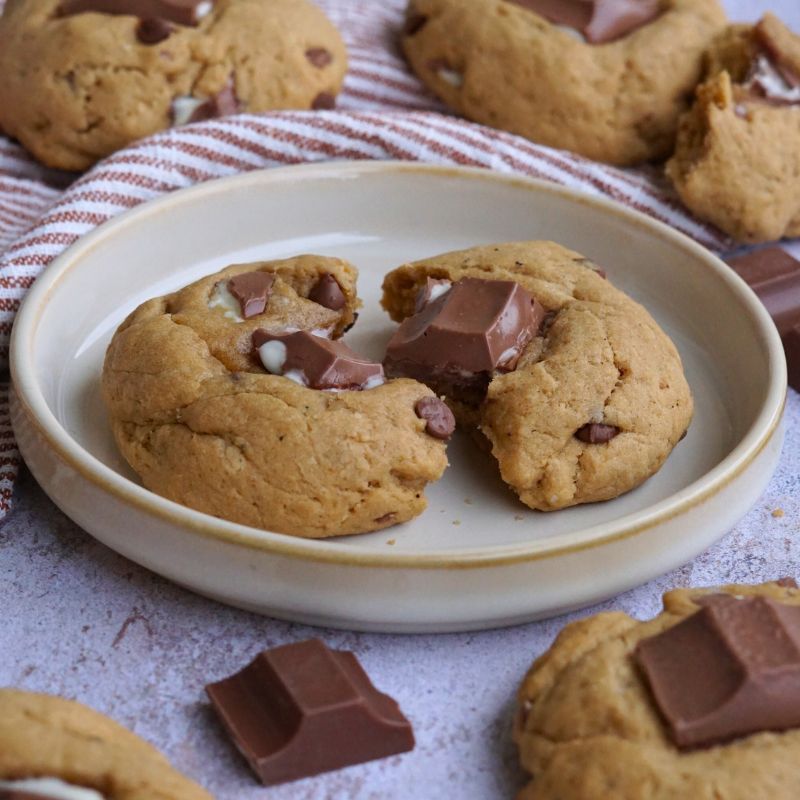 Quand j’étais petite (et encore maintenant !) j’étais fan des Kinder Maxi ! Alors pour apporter de la gourmandise à ma recette de cookies, je l’ai réalisé avec des morceaux de Kinder pour un résultat régressif. Les cookies plairont à toute la famille et sont faciles à réaliser avec des enfants.