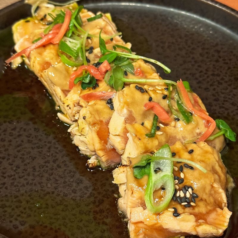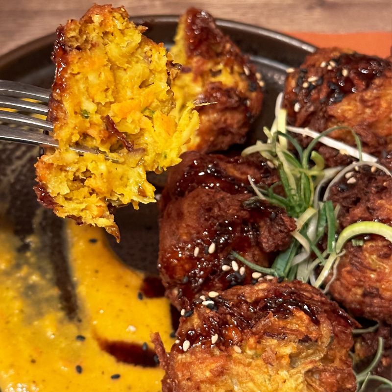 Pour le salé, j’ai goûté leurs Pakoras (13€) des petits beignets de légumes népalais, le sweet pork bun (16€) au porc caramélisé au gingembre et le tataki du moment au saumon (14€). On en prend plein les papilles, toutes les assiettes sont très savoureuses !