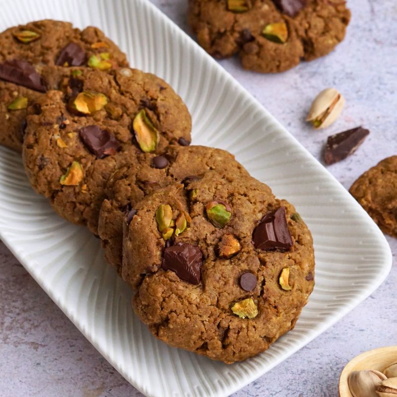 Aujourd’hui, je vous partage ma nouvelle recette de cookies à la pistache et aux pépites de chocolat. Ils sont gourmands et facile à réaliser pour changer des cookies classiques