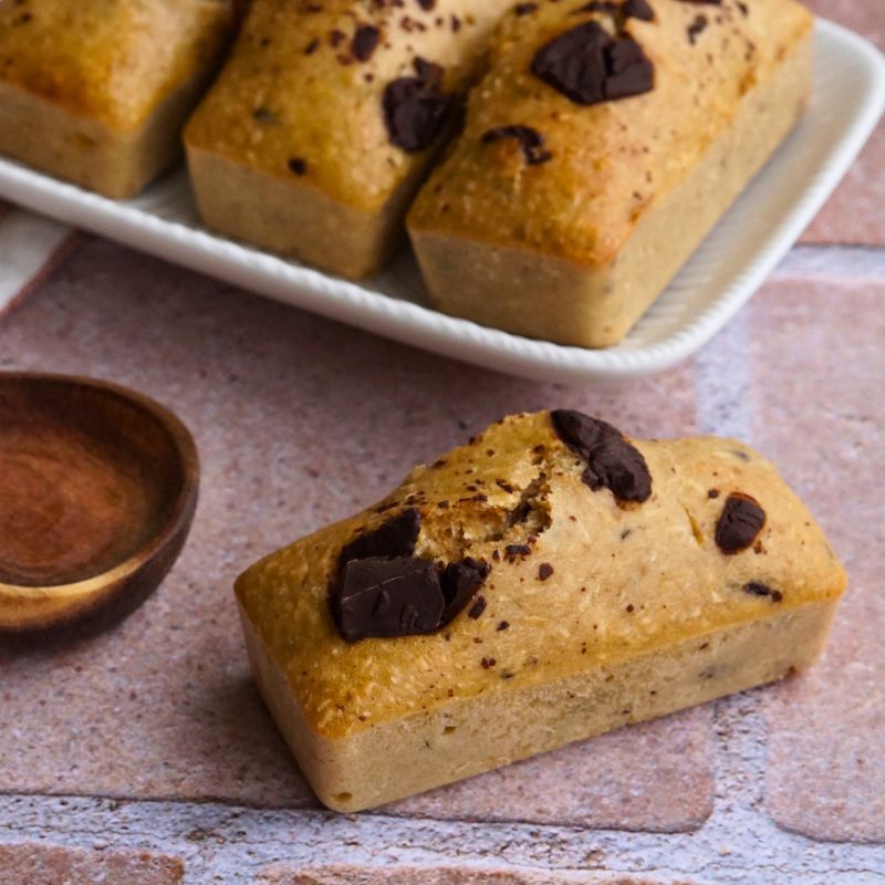 Ces petits cakes sont trop pratiques pour les emporter avec soi ! Perso je les fais le dimanche et ça me sert de goûter pour la semaine à emporter au travail. Mais si vous souhaitez en réaliser qu’un, libre à vous de verser toute la pâte dans un petit moule à cake ou à doubler les portions pour un cake normal.
