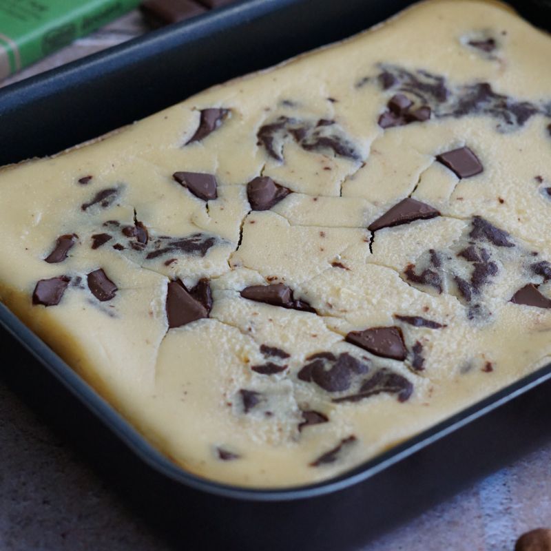 - Verser l’appareil à cheecake dans le moule, sur la pâte à brownie.