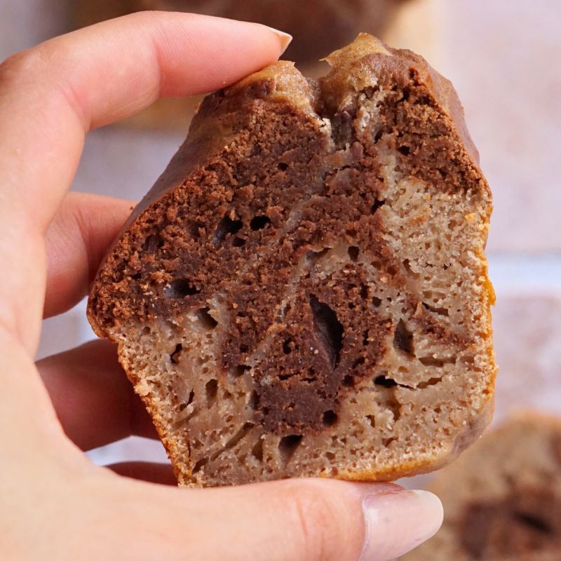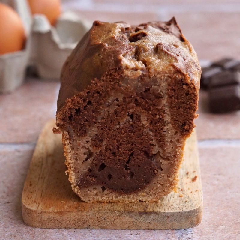 Pour changer du cake marbré classique, je vous partage aujourd’hui une version automnale au chocolat et à la crème de marrons.