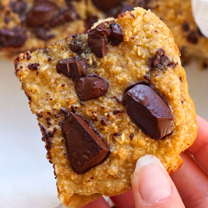 - Dans un moule avec du papier sulfurisé, mettre la pâte puis ajouter par-dessus quelques pépites avant d’enfourner pendant 30 minutes.