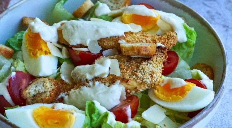 - Salade César maisonMa version de la salade César avec le poulet pané et la sauce maison.